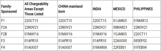 美国国务院刚刚公布了2024年10月的移民排期。新的财年开始,看到很多类别的排期都有进展。 其中亲属移民类别,绿卡的配偶/21岁以下子女(...