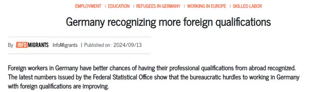 在 2023 年,德国认可的外国专业资格数量增长了四分之一,主要集中在医疗领域。 根据媒体报道,外籍工人在德国获得专业资格的机会显...