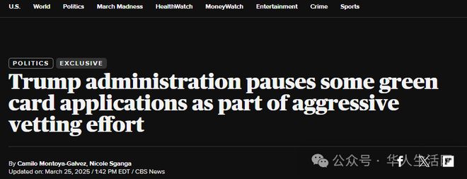 据美国哥伦比亚广播公司新闻(CBS News)率先报道,美国政府已悄然暂停处理部分绿卡申请案,包括 多名不愿具名的知情人士...