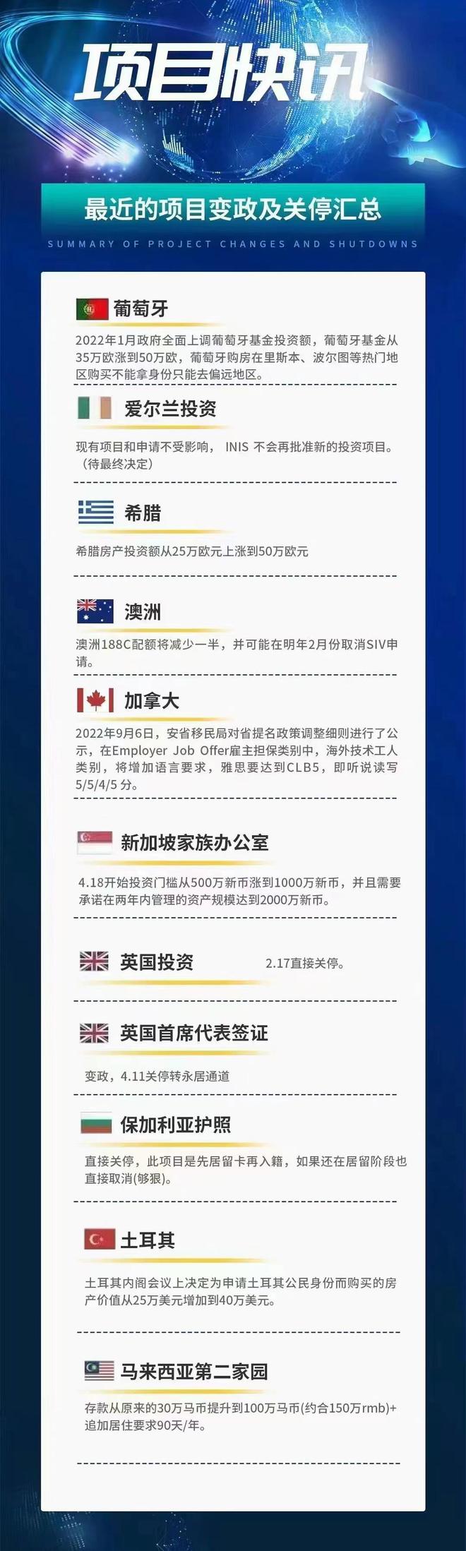 2022开年至今,许多国家相继宣布关停移民项目,亦或是选择提高移民门槛,总体移民政策向更严谨、更严格的方向发展,当中不乏备受国内申请人青睐的国家。 ...